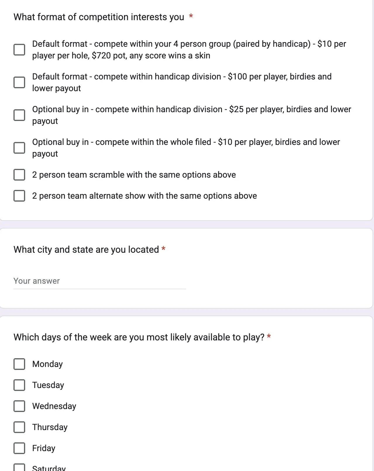 Fill out the Skins Golf League Interest Form below to be notified when the SGL tour launches!